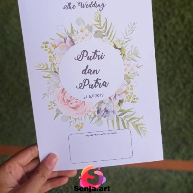 Undangan Pernikahan Rustic Motif Bunga Mawar Bonus Kartu Souvenir