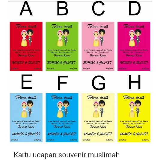 Jual Kartu Ucapan Terima Kasih Souvenir Pernikahan Motif Muslimah
