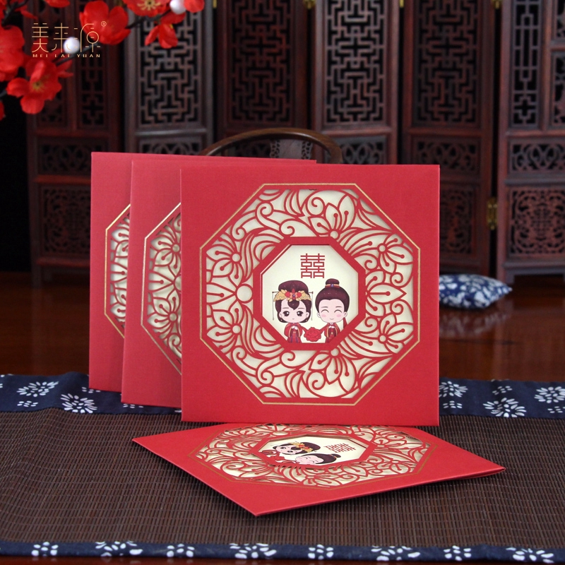 2015 Cina Tradisional Undangan Pernikahan Potong Laser Mengundang Templat Word Undangan Pernikahan Cina Atmosfer Merah Word