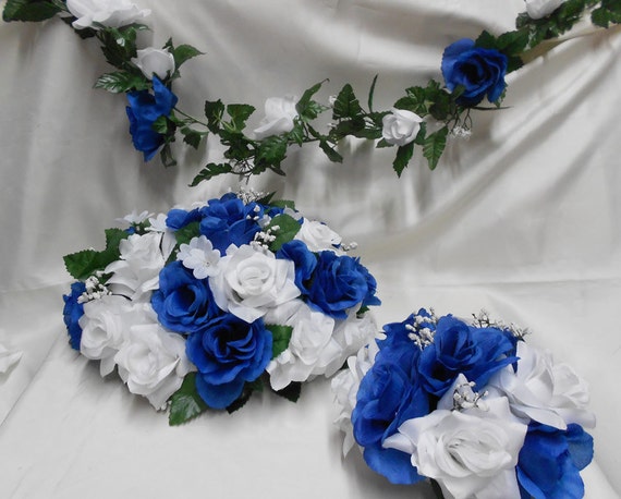 Your Colors Roya Blue White Roses Wedding Bridal Centerpieces Etsy