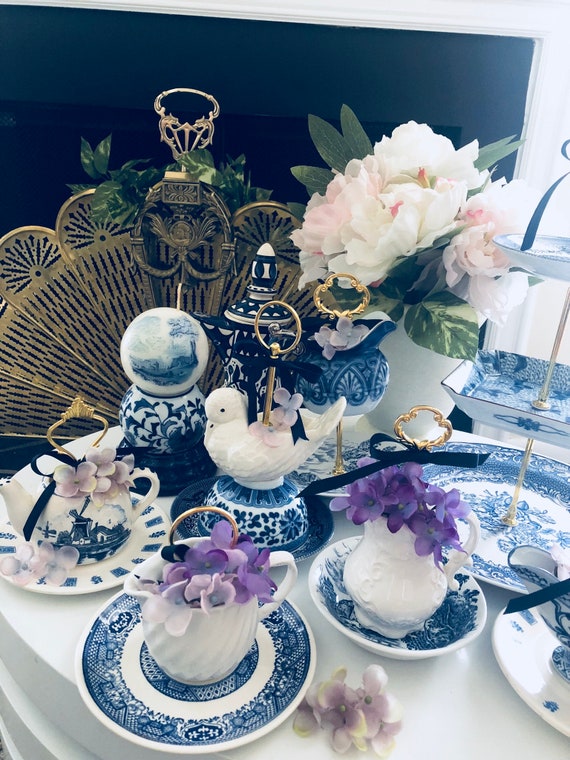 Bluewillow Blue White Wedding Centerpiece Jewelry Stand Bird Etsy
