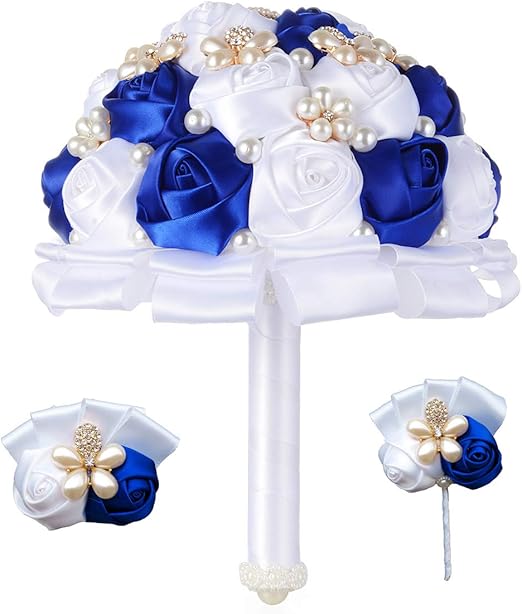 Amazon Com Dwedding Wedding Bouquet Navy Blue Ivory Bridesmaid Top Wedding Themes 2020 For Every Bridal Style Wedding Forward