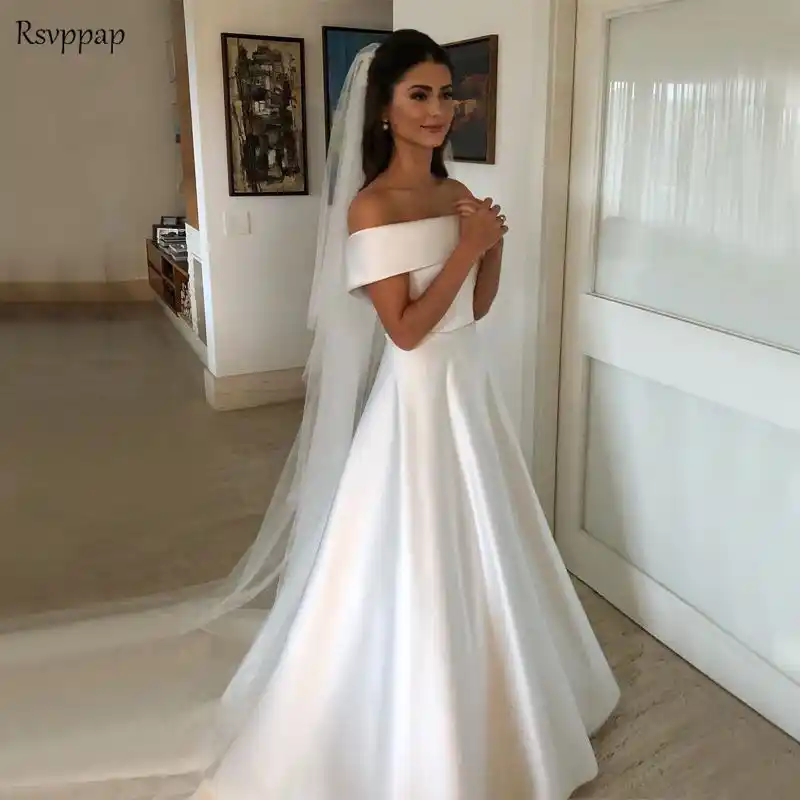 Simple Wedding Dresses 2019 A Line Elegant Cheap Satin Bridal
