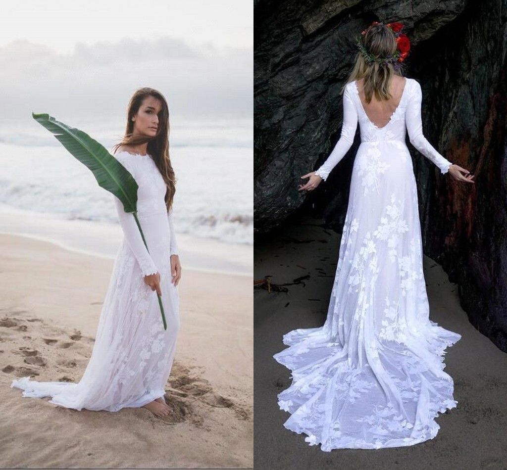 Simple Elegant Summer Beach Wedding Dresses Lace Long Sleeves Sexy