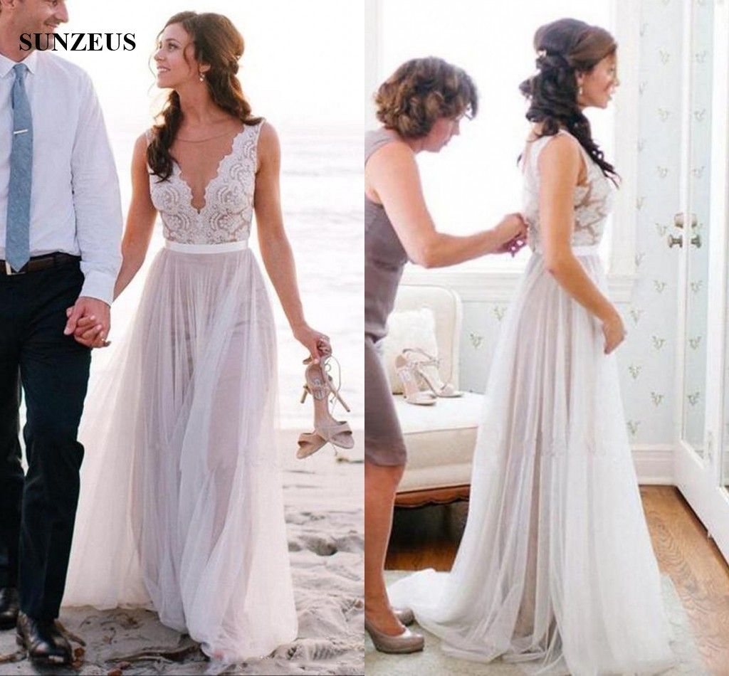Beach Wedding Dress Boho 2019 Elegant A Line V Neck Backless
