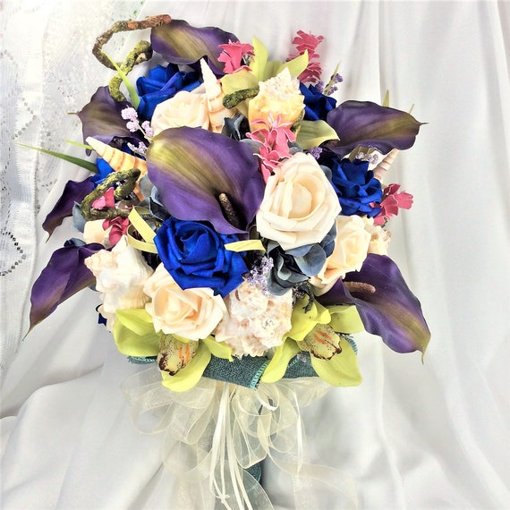 Beach Wedding Flowers Bridal Bouquet Seashell And Flower Etsy