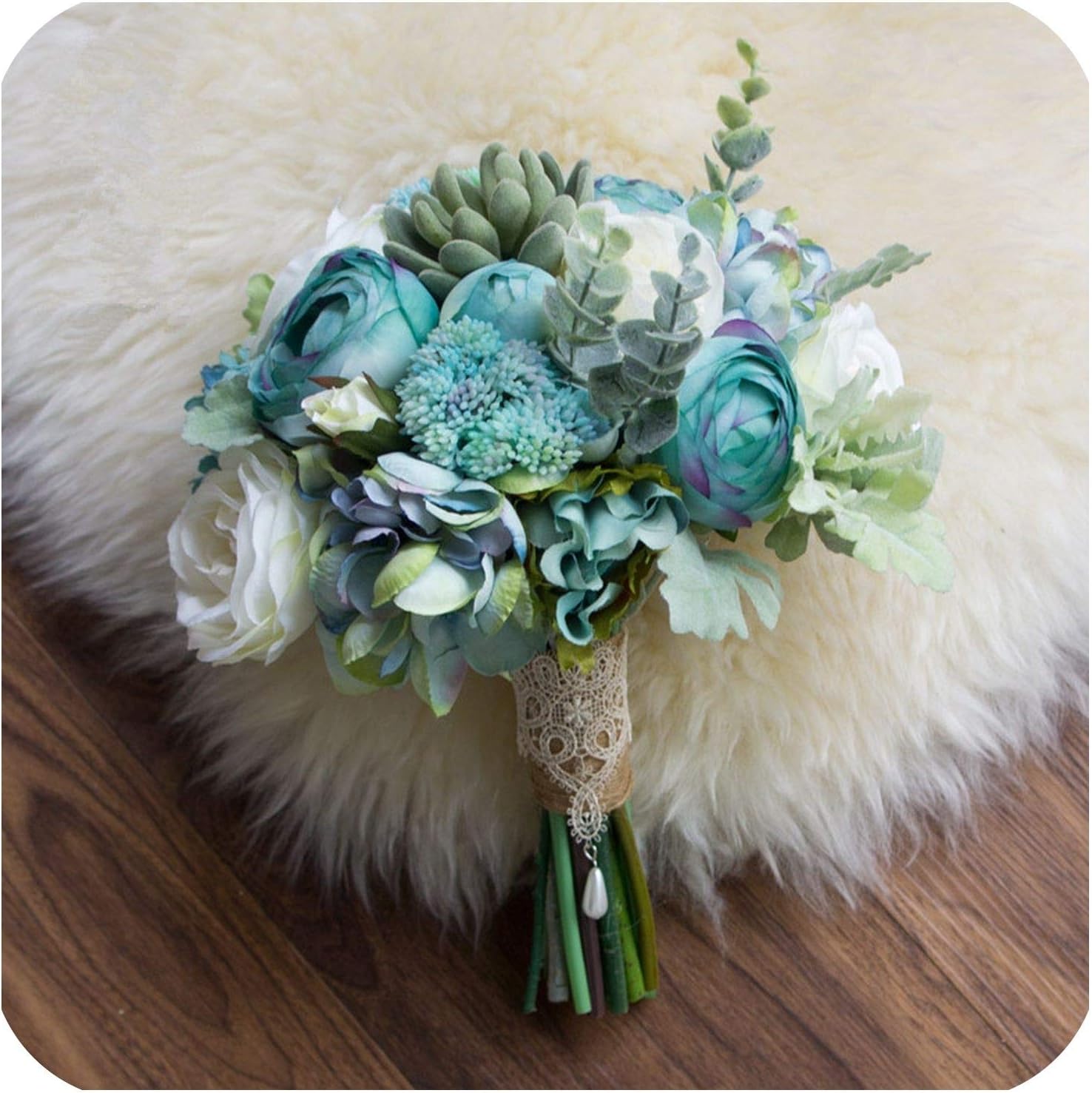 Amazon Com Ches Ins Blue Bride Bouquet Beach Wedding Flower