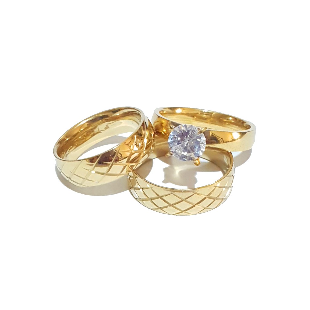 3 In 1 18k Gold Plated Couple Wedding Ring With Stylish Crosshatch