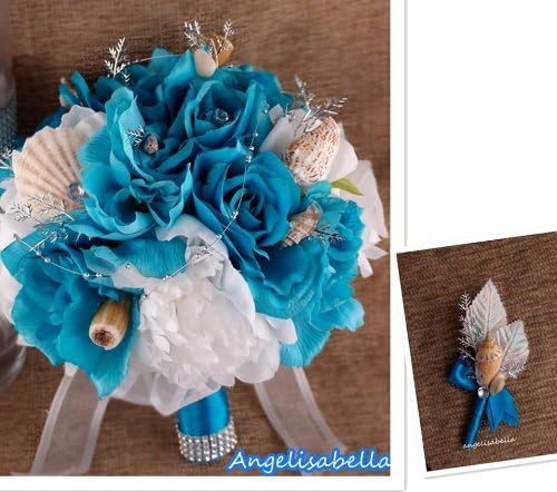 Amazon Com Angel Isabella Seashell Wedding Bouquet Boutonniere