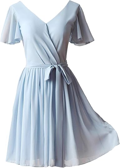 Blue Dress Short Bridesmaid Dress Chiffon Short Dresses Short