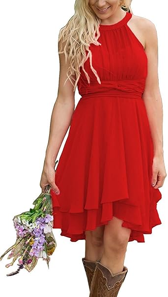 Bridesmaid Dresses Short Chiffon Halter Country Beach Wedding