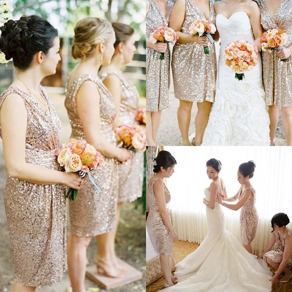 Sparkly Rose Gold Cheap 2019 Mermaid Bridesmaid Dresses Short