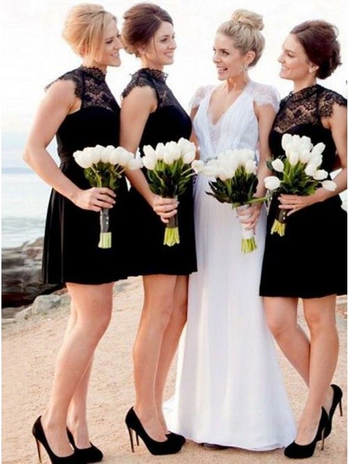 2019 Newest Black Lace Short Bridesmaid Dress Cheap Beach Wedding