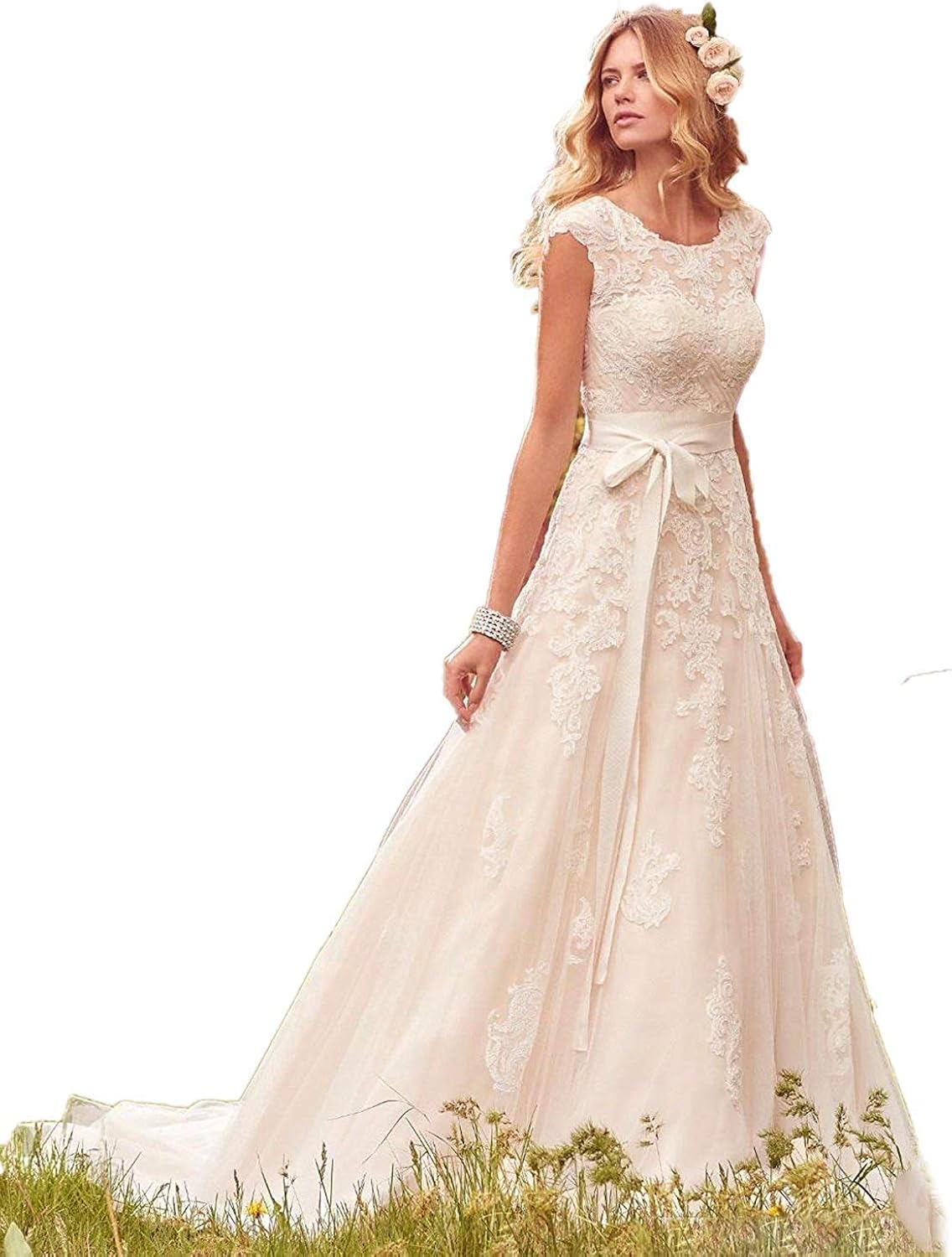 Discount Elegant Lace A Line Summer Beach Wedding Dresses 2019
