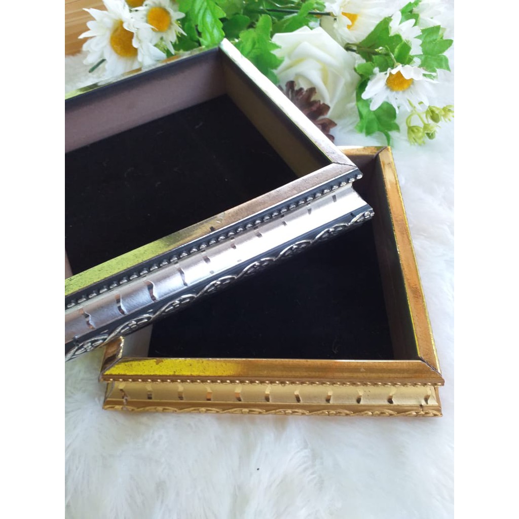 Kotak tempatperhiasan yang terbuat dari frame ukir. Berisikan cincin pernikahan yang kemudian dipakaikan saat acara pemberkatan pernikahan di tata dengan dilengkapi dengan perhiasan lainnya seperti kalung gelang anting dan lainnya. Pemilihan nampan tentunya disesuaikan dengan kotak cincin pernikahan yang anda pilih.