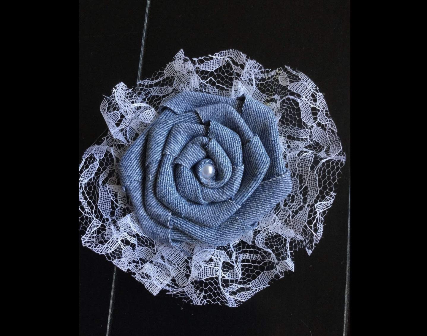 Amazon Com Set Of Three Denim Flowers With Lace Ruffle Country