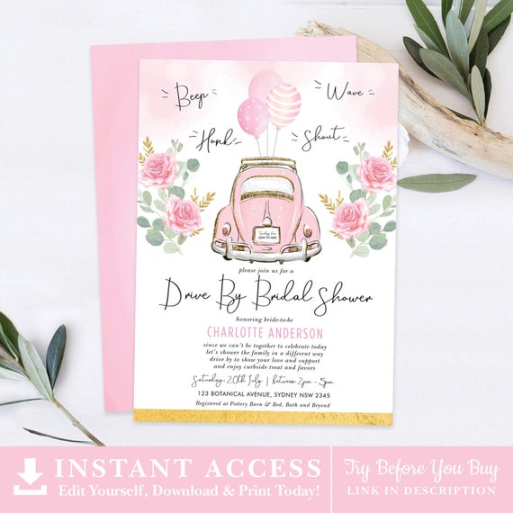 Printable Drive By Bridal Shower Invitation Instant Download Bobotemp