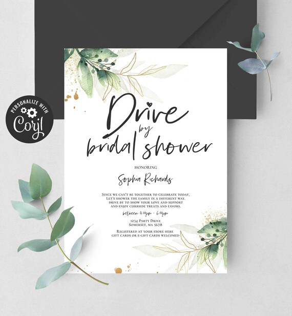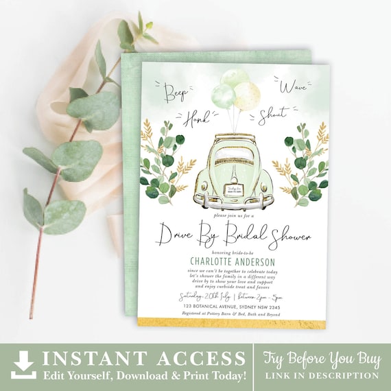 Editable Drive By Bridal Shower Invitation Greenery Drive Etsy