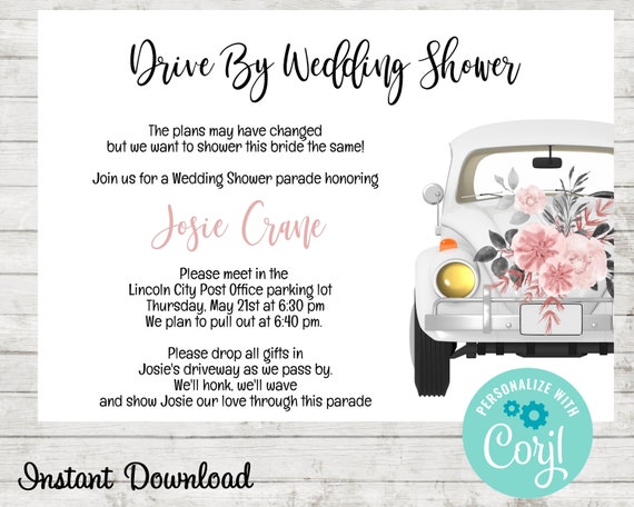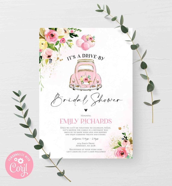 Editable Drive By Bridal Shower Invitation Couples Shower Invite Quarantine Drive Trough Floral Wedding Shower Template Download Corjl 0335 2971985 Weddbook