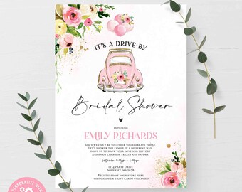 Pink Floral Drive By Bridal Shower Invitation Drive Through Quarantine Party Parade Invite Editable Template Instant Download Db1 By Blue Bunny Printables Catch My Party