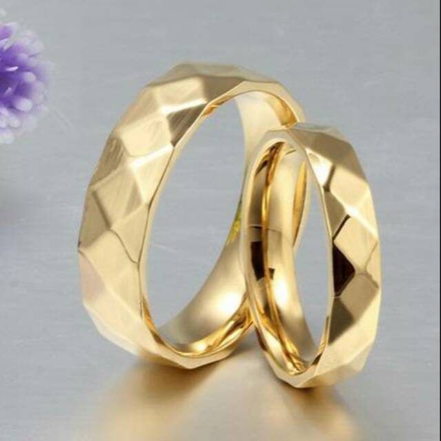 Cincin Emas Titanium Pasir Gold Ukir Nama Grafir Ring Kawin
