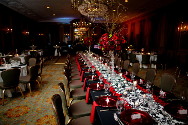 Black Tie Motown Event With Classic Red Rose Centerpiece And Red