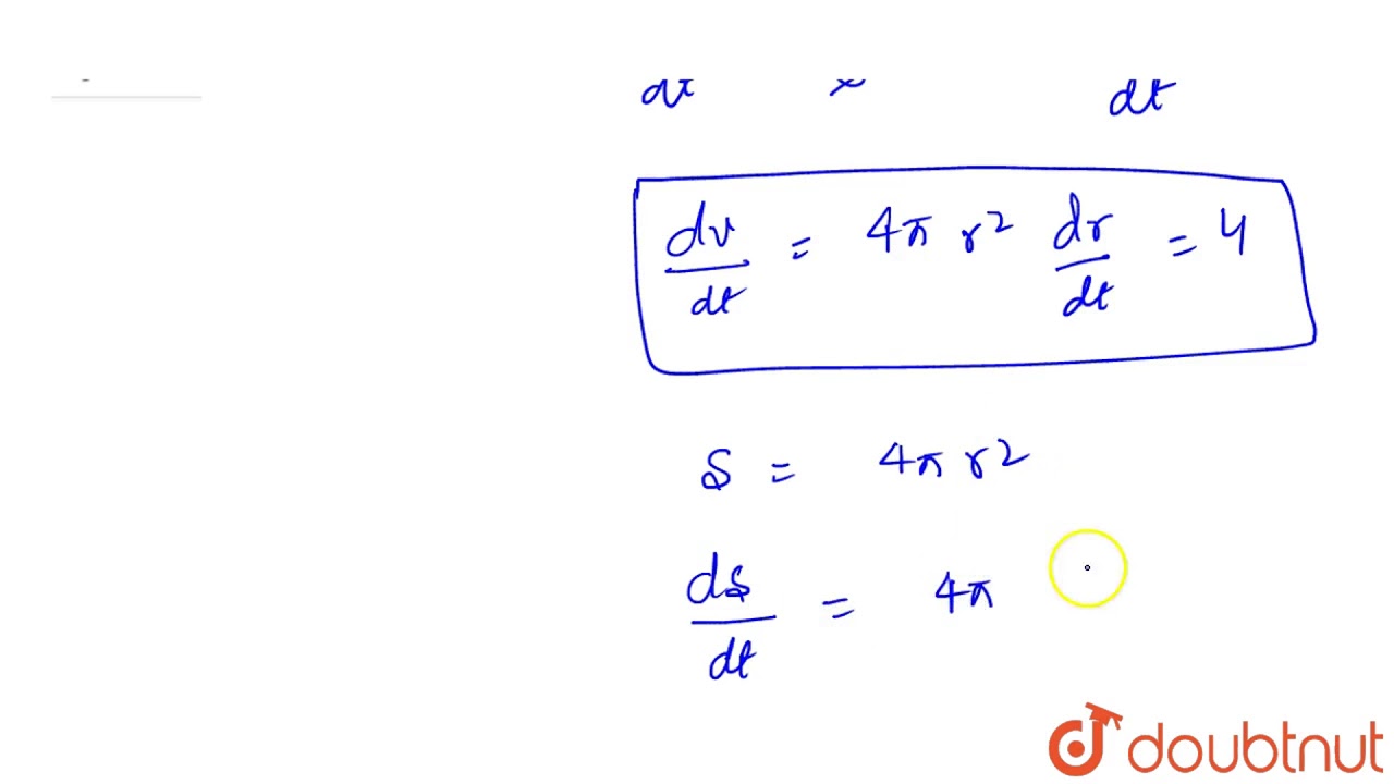 If the volume of a sphere increases at constant rate `((dv)/(dt)=4