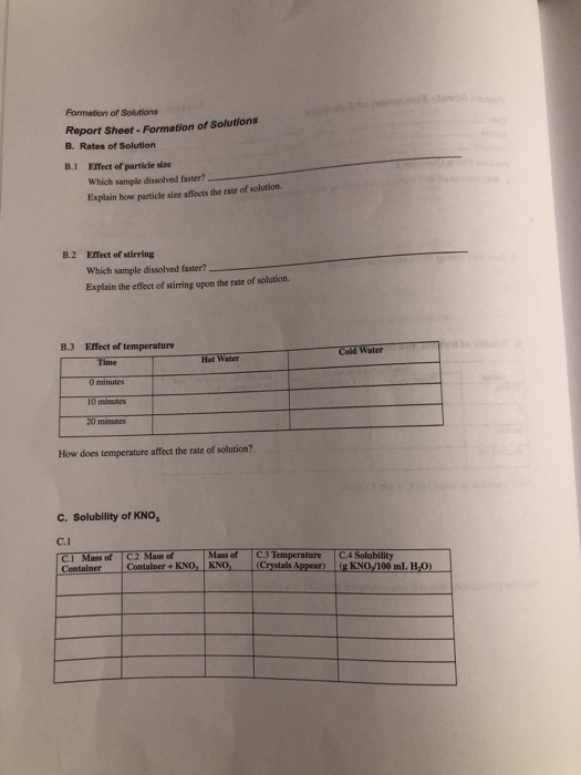 Solved: Report Sheet - Formation Of Solutions Formation Of... | Chegg.com